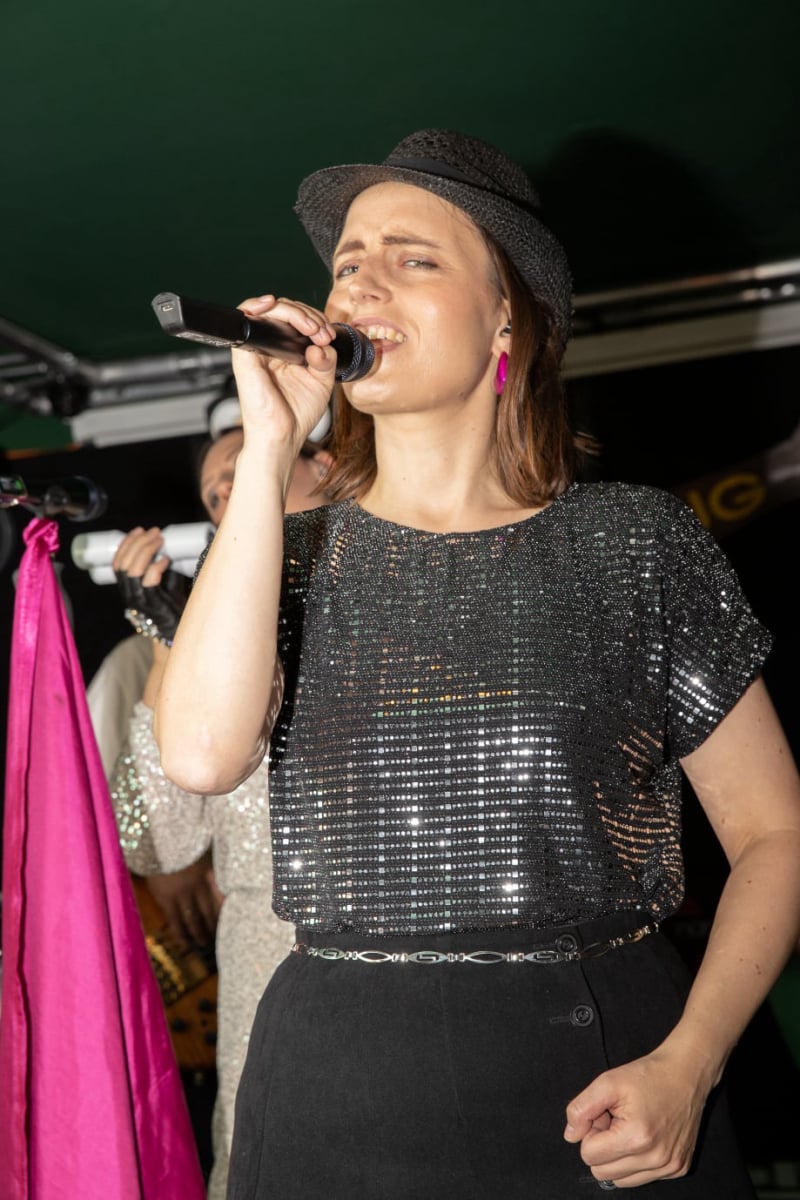 Die zwei stimmgewaltigen Sängerinnen „MissKiss“ Alina und Johanna heben die Zuhörer in andere Sphären. Immer perfekt eingespielt: die Rhythmus-Groove-Maschine. On top: die knackige Bläsersection aus Saxophon, Trompete und Posaune.